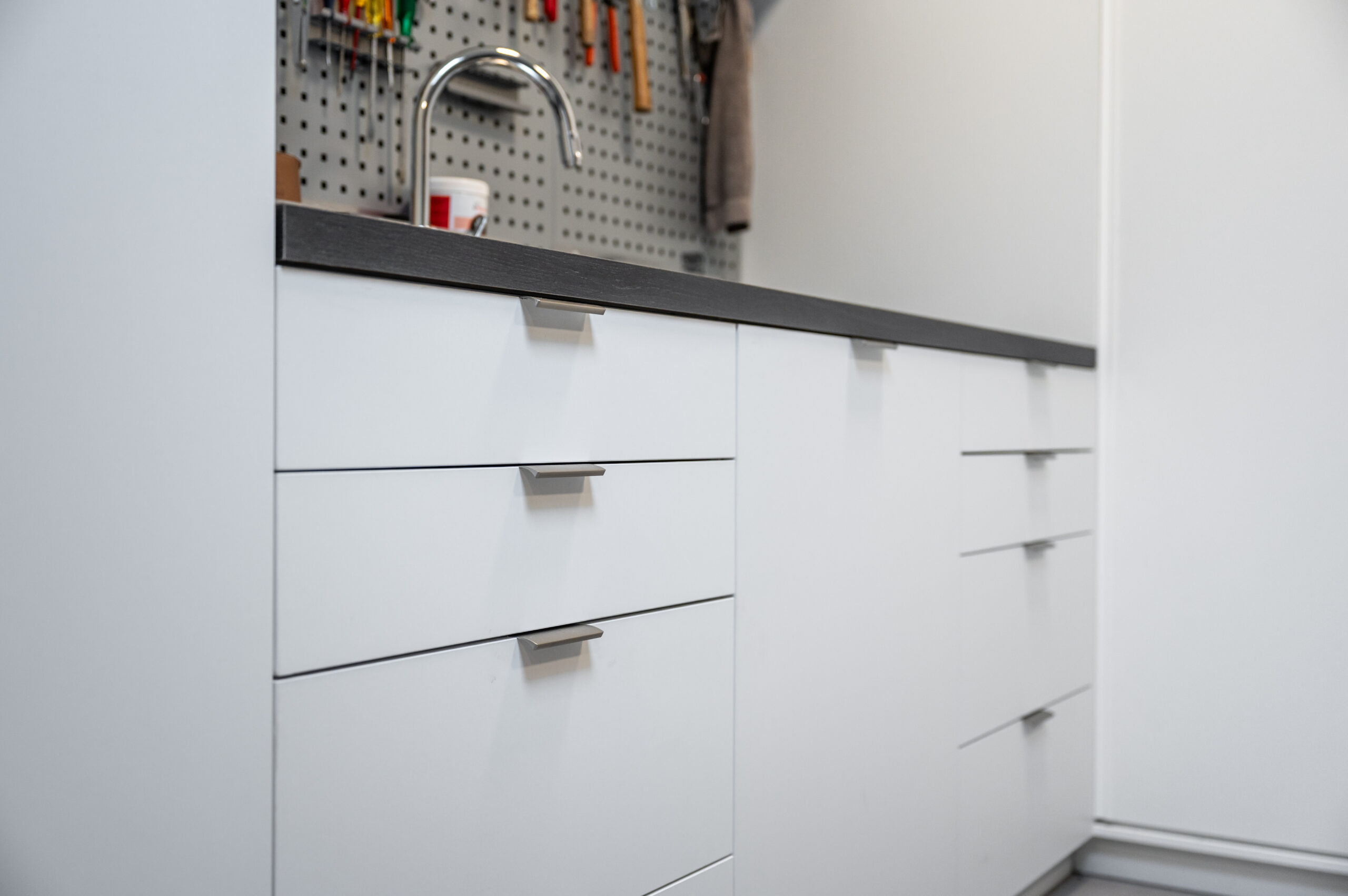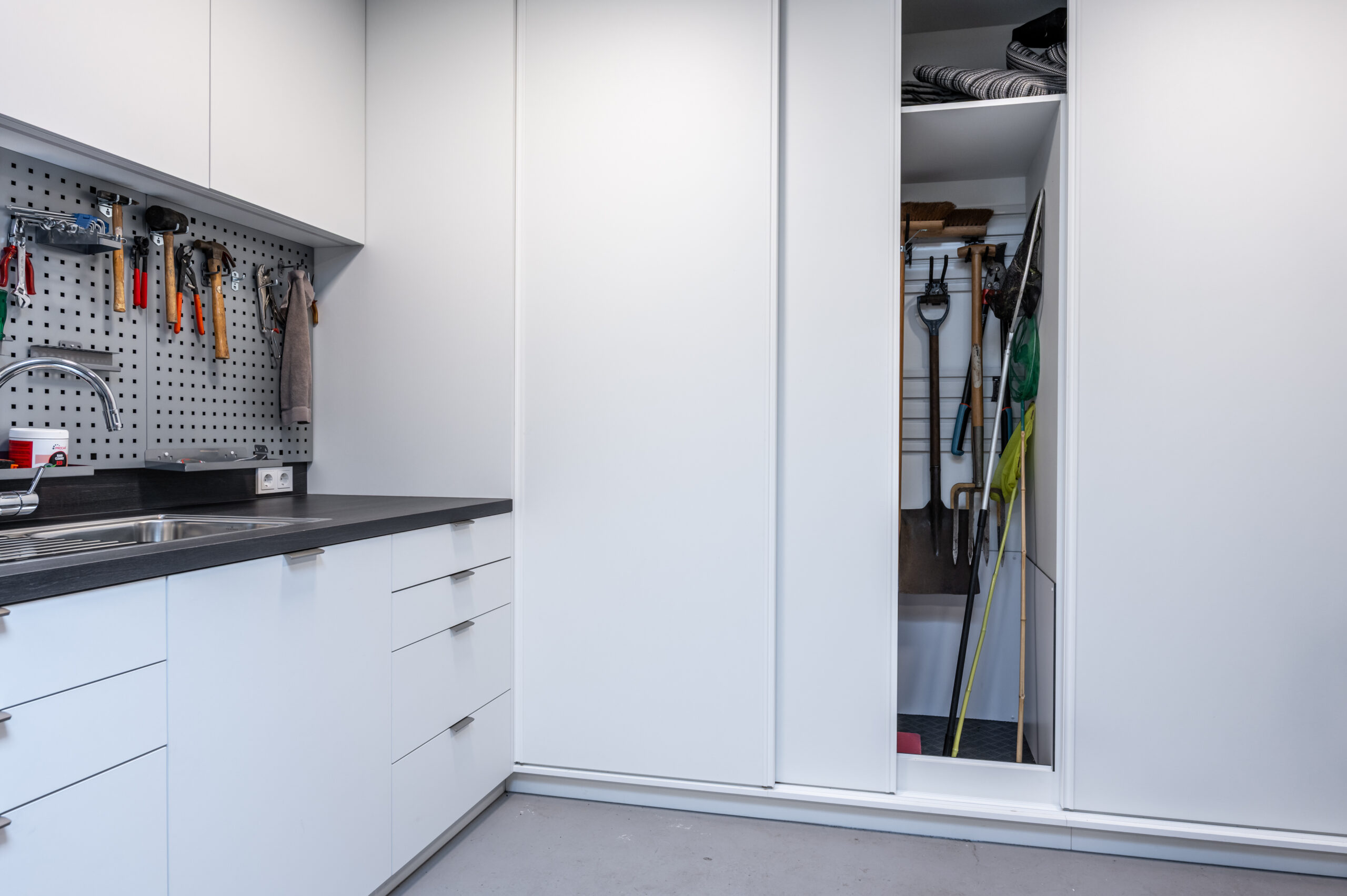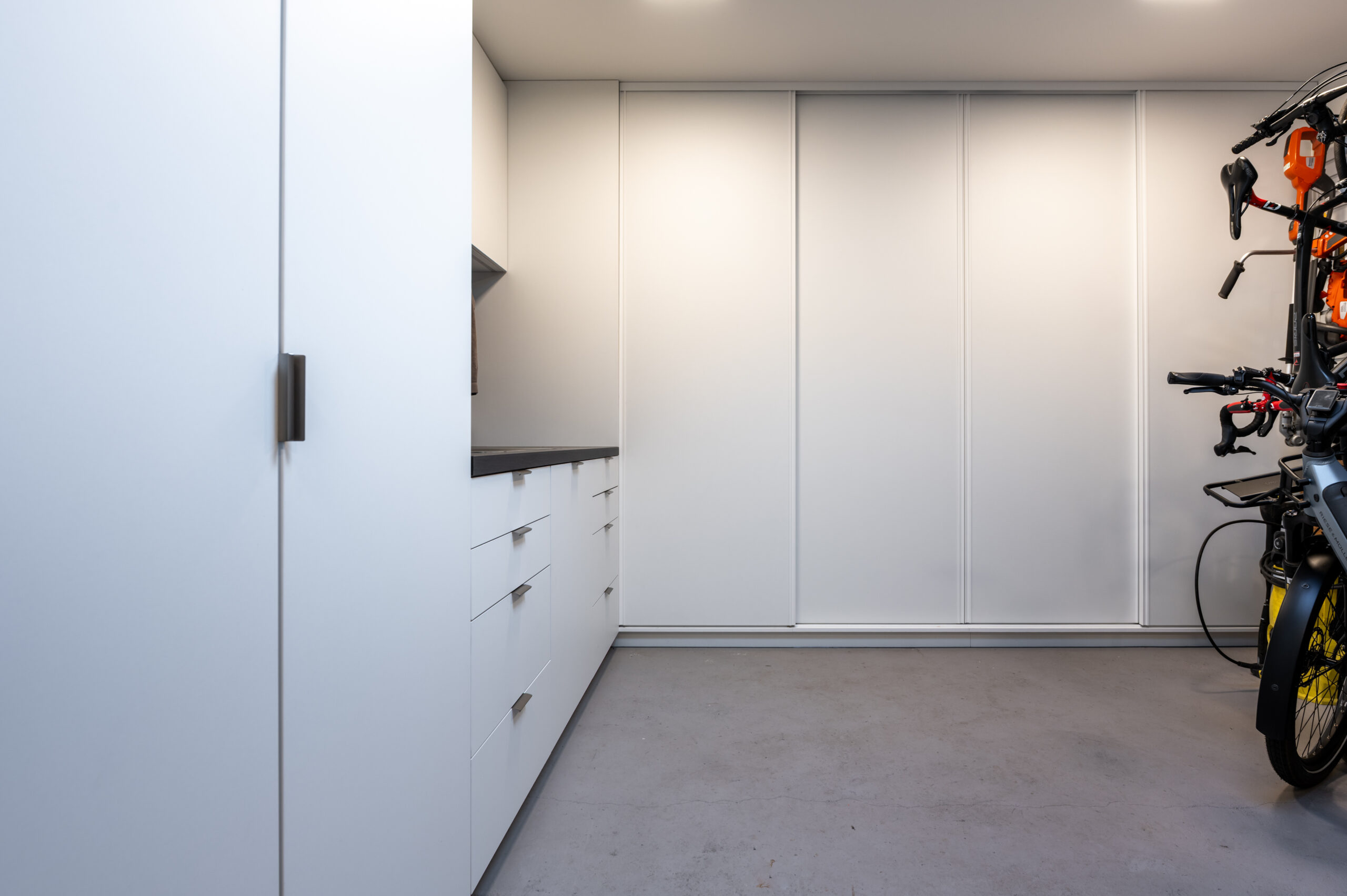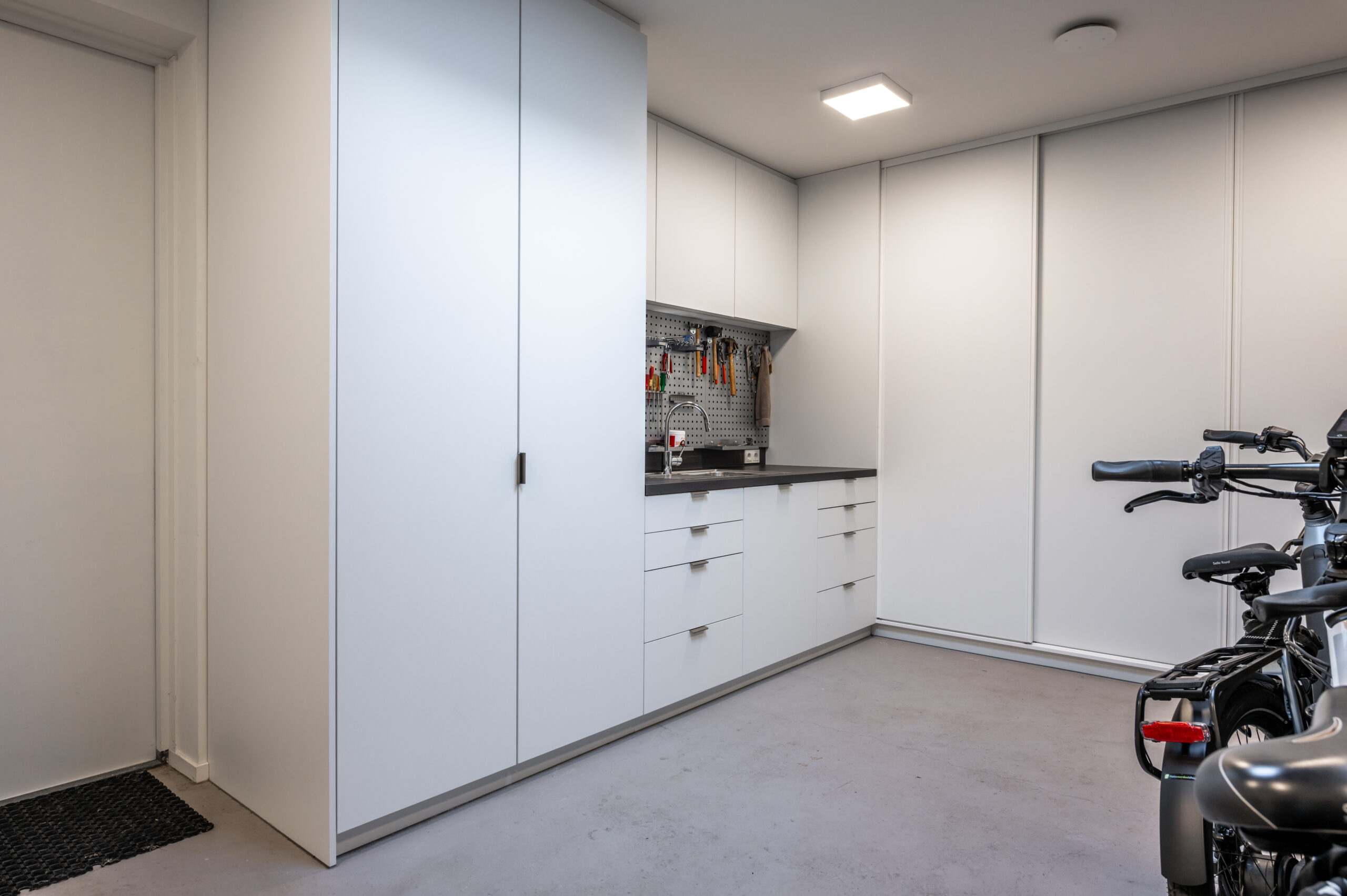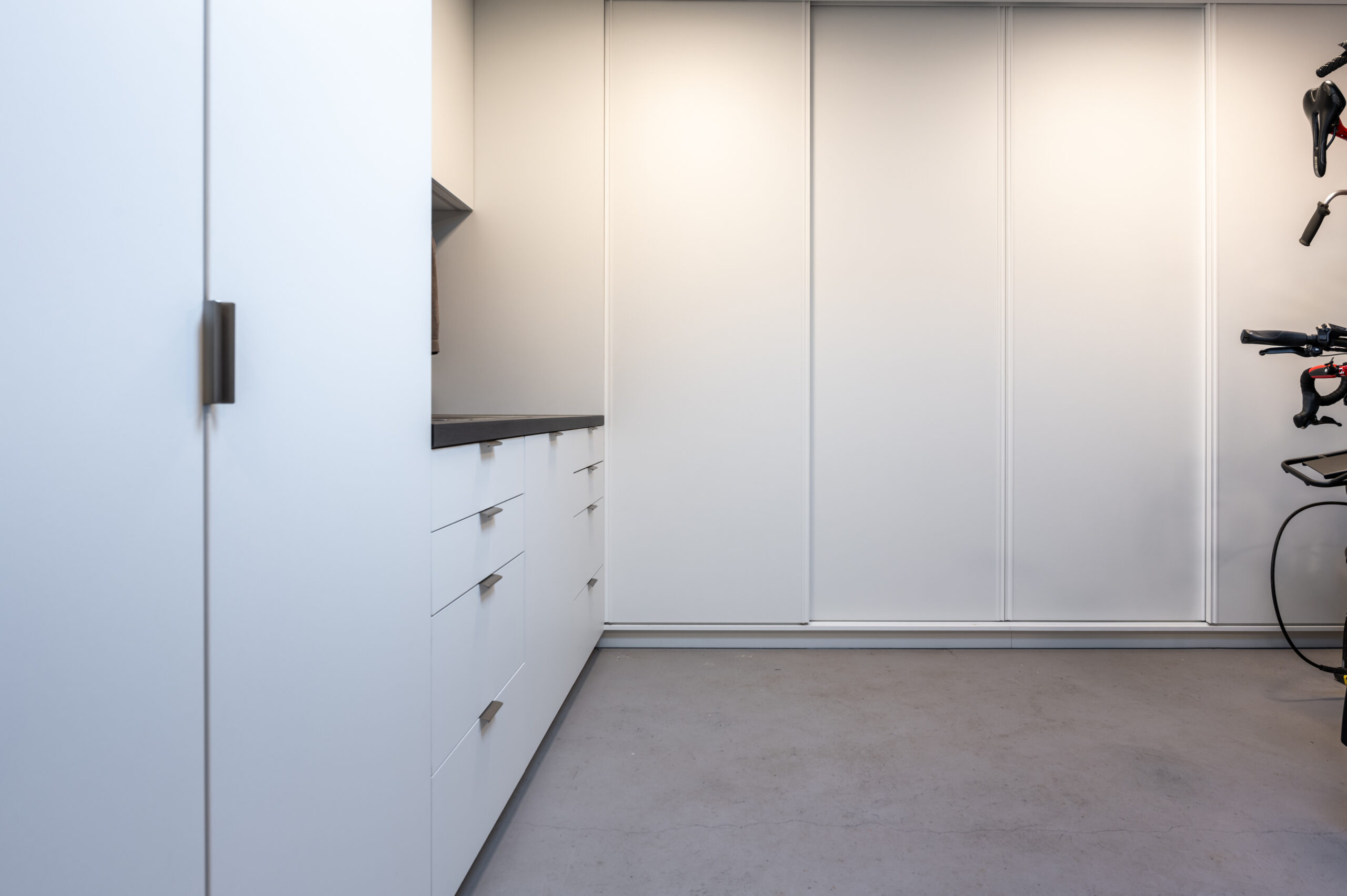 Voorafgaand aan de uitvoering is de garage volledig uitgewerkt in tekeningen. In deze ontwerpfase werkten GH en Joyce Traas nauw samen. De interieurarchitect bracht het ruimtelijke en functionele ontwerp in, terwijl GH meedacht over maakbaarheid, maatvoering en detaillering.
