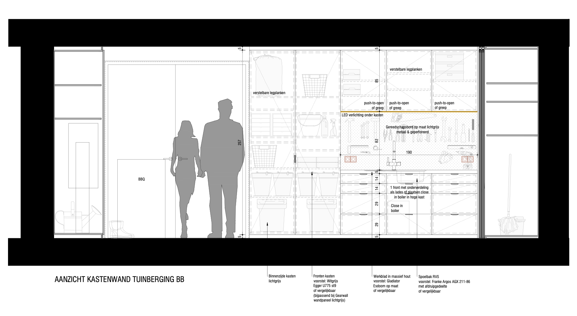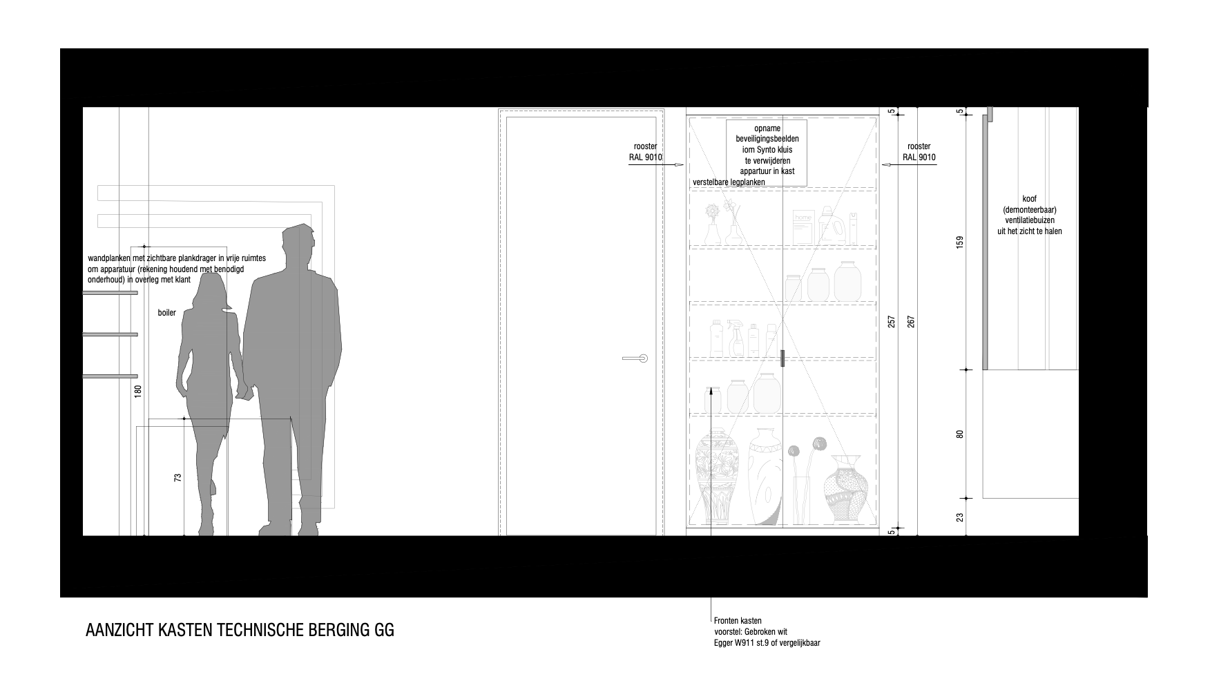 De tekeningen laten zien hoe keuzes tot stand komen voordat er gebouwd wordt. Ze maken zichtbaar hoe vaste elementen in de ruimte zijn meegenomen en hoe de kastindeling daarop is afgestemd. Dit proces zorgt ervoor dat ontwerp en uitvoering geen losse fases zijn, maar direct op elkaar aansluiten.